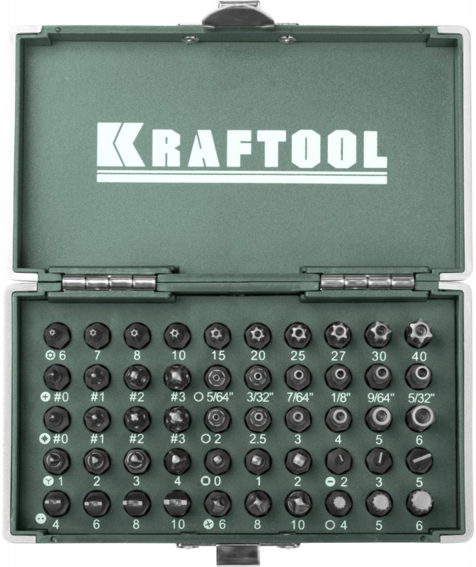 Набор кованых торсионных бит KRAFTOOL X-Drive Cr-Mo, система насечек "NSS", 50 предметов, в боксе [26065-H50]