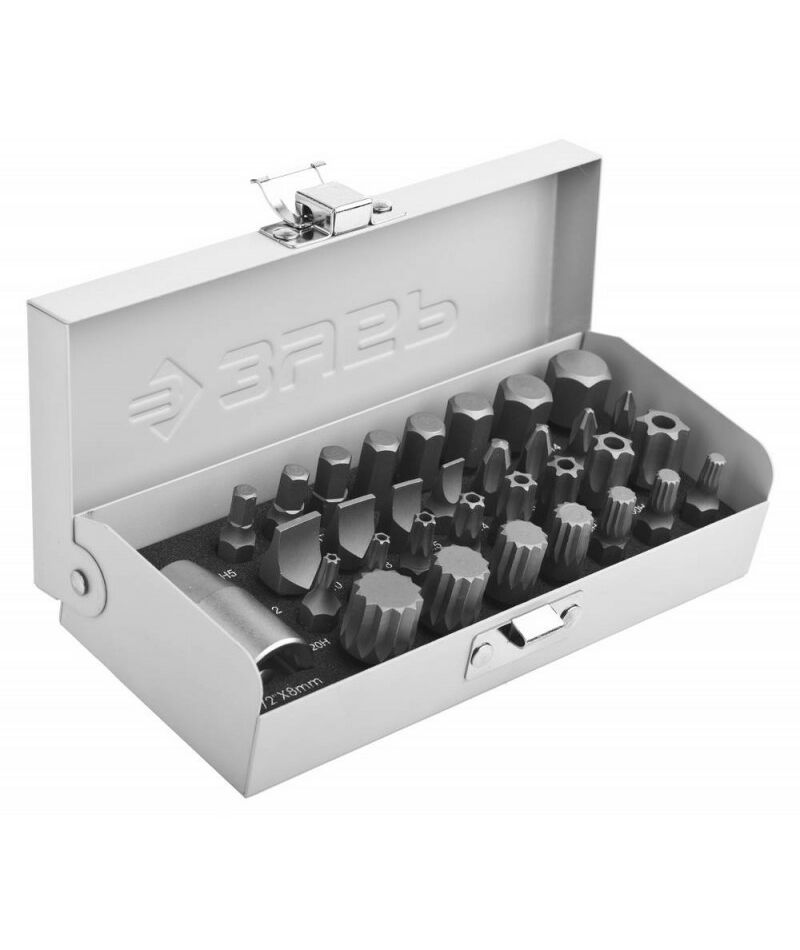 Набор специальных бит в металлическом боксе Зубр 2655-H32 PH, SL, HEX, TORX, SPLINE, 32 предмета
