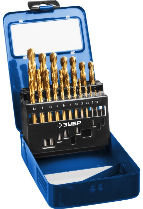 Набор сверл по металлу Зубр 29626-H19 КОБАЛЬТ 19шт(1-10мм), сталь Р6М5К5, класс А, мет.бокс [29626-H19]