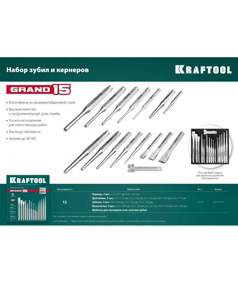Набор зубил и кернеров KRAFTOOL GRAND-15 15 предметов [21075-H15]