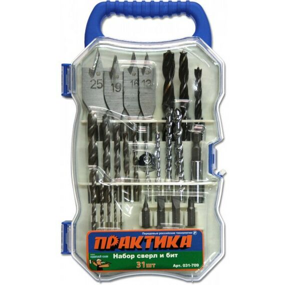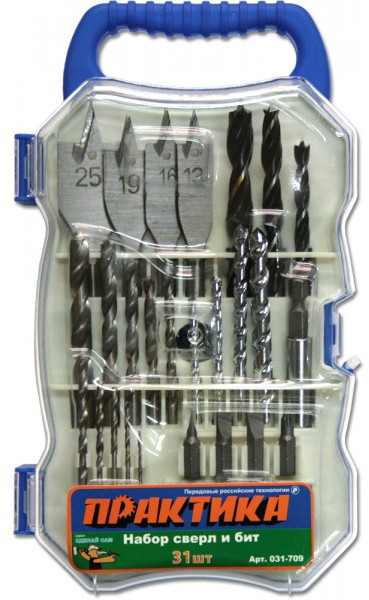 Набор оснастки Практика 031-709 биты, сверла по металлу, дереву, кирпичу, перовые, 31 шт