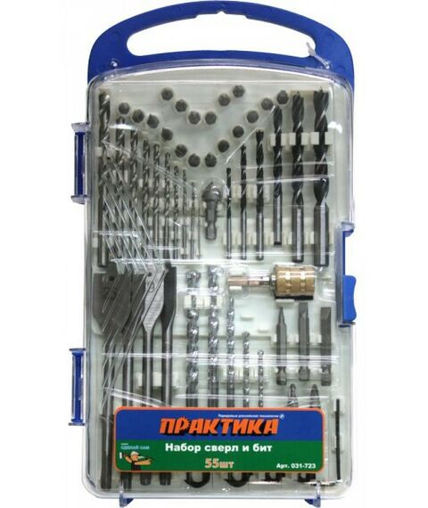 Набор бит и сверл Практика 031-723 биты, сверла по металлу, дереву, кирпичу, перовые, 55шт
