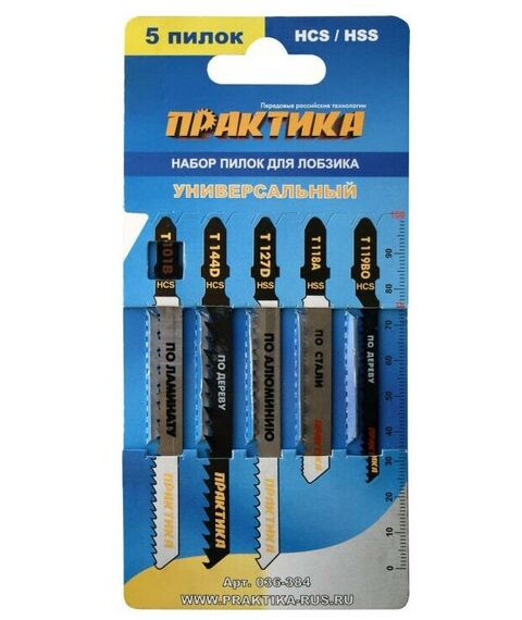 Набор пилок для лобзика Практика 036-384 универсальный, 5 шт.