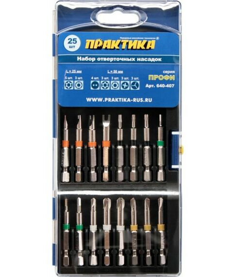 Биты набор Практика 640-407 Профи кассета, 25шт