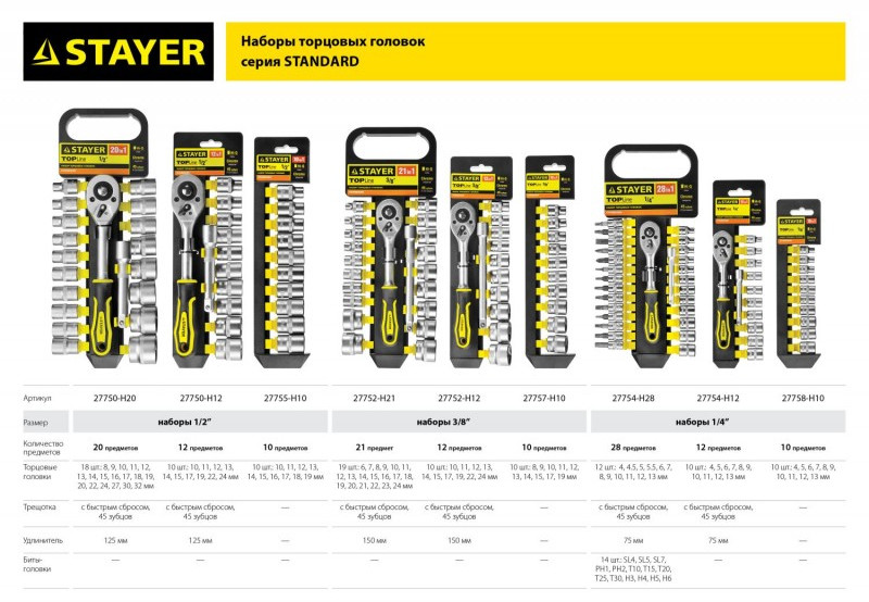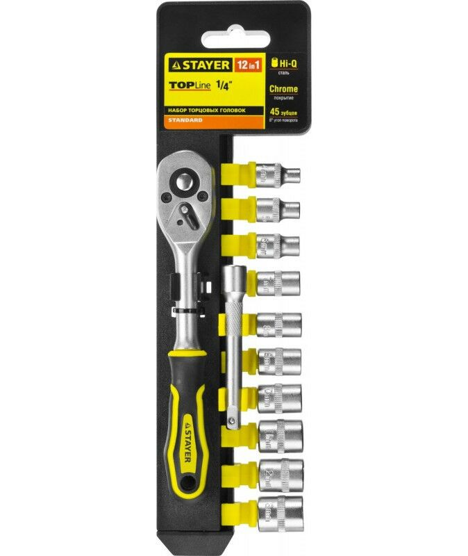 Набор торцовых головок и бит-головок STAYER RSS 12S 12 предметов, 1/4" [27754-H12]