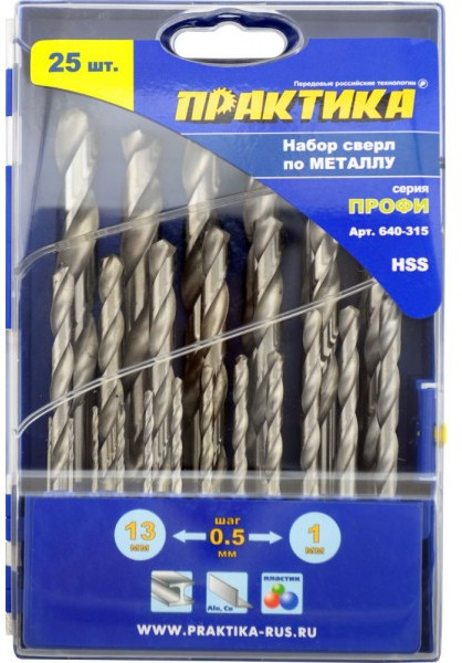 Сверла набор/металл Практика 640-315 25шт, 1-13мм, кассета