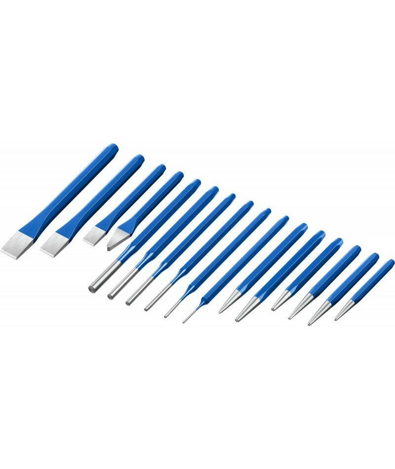 - Набор высококачественных зубил и кернеров. Произведены из хромованадиевой стали. Шестигранный профиль для повышенных нагрузков. Закалены