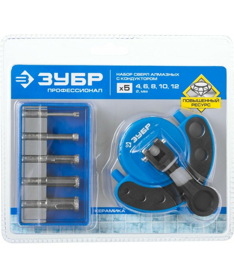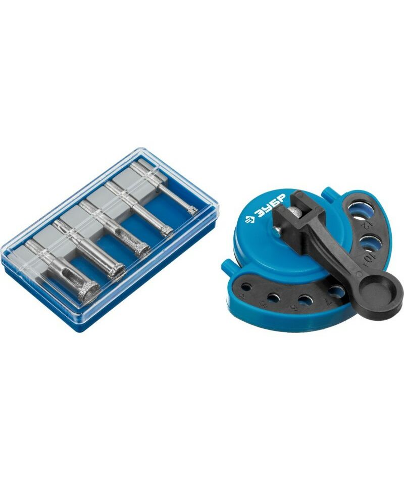 Набор алмазных трубчатых сверл с кондуктором Зубр Профессионал 29851-H6 d 4, 6, 8, 10, 12 мм, Р60