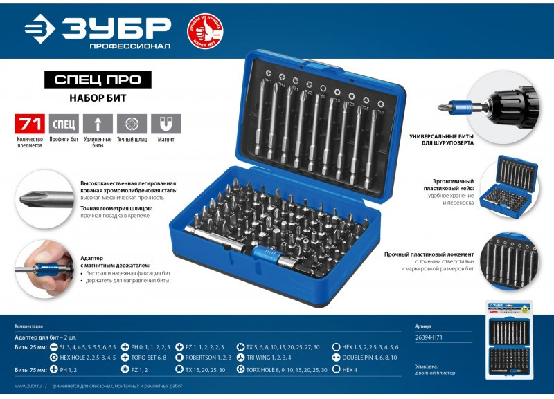 Набор бит Зубр Профессионал Про-71 [26394-H71]