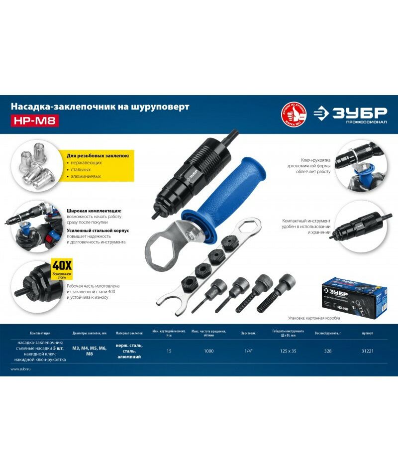 Насадка-заклепочник на шуруповерт Зубр Профессионал НР-М8 [31221]
