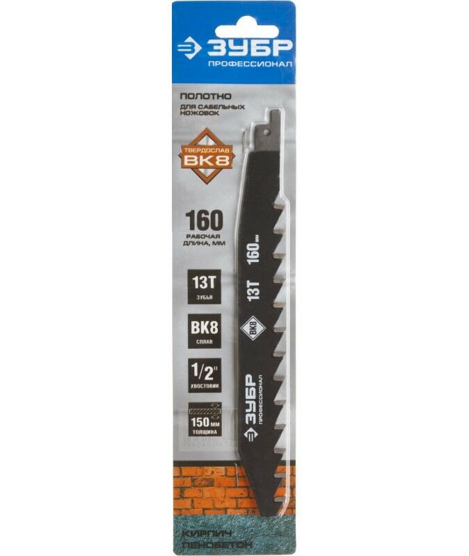 Полотно по легкому бетону Зубр Профессионал 215/165 13Т, с тв.зубьями для сабельной эл.ножовки [159770-13]