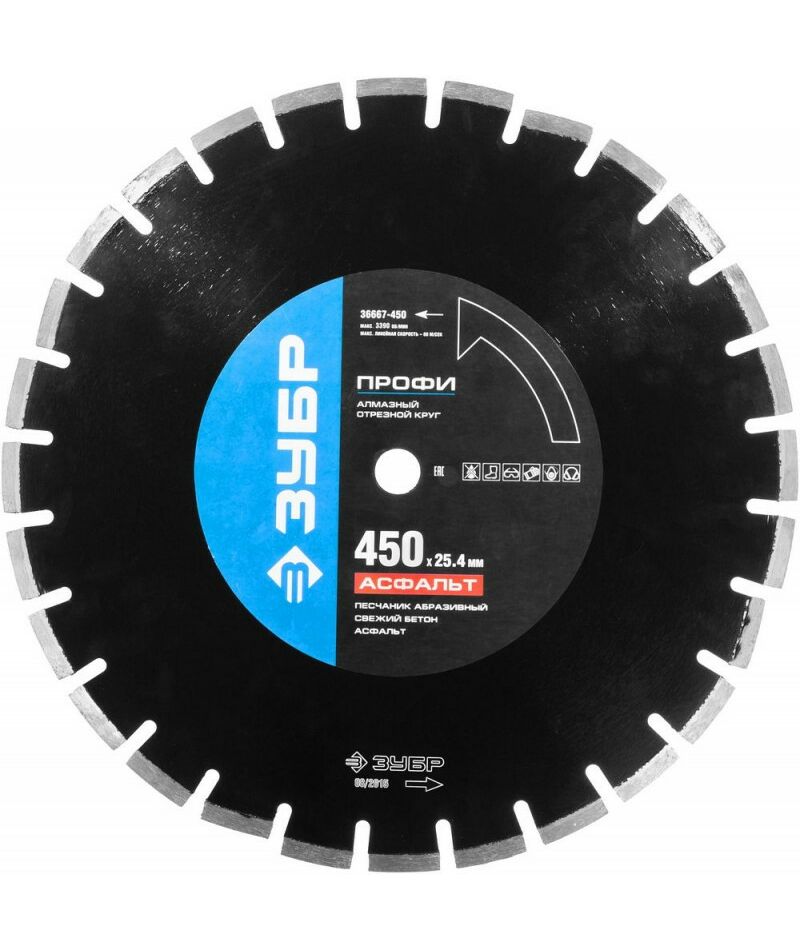 Диск алмазный отрезной по асфальту Зубр Профессионал 36667-450 450 мм
