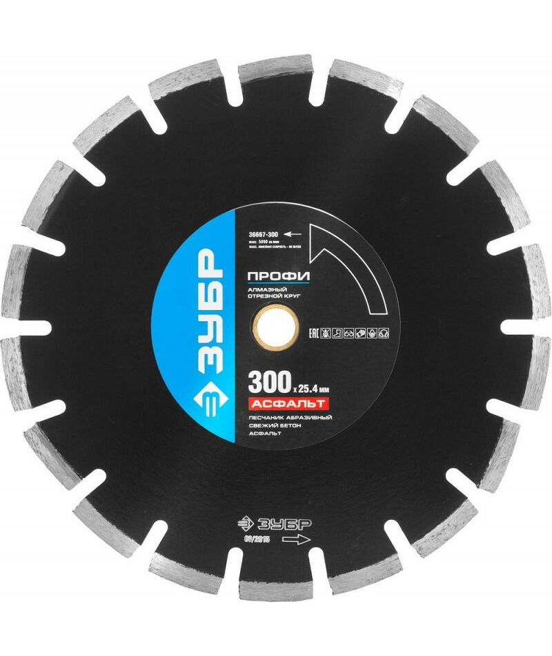Диск сегментный алмазный отрезной по асфальту Зубр Профессионал АСФАЛЬТ 303 мм 25.4/20 мм, 10 х 3.2 мм [36667-300]