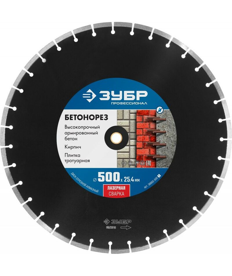 Диск алмазный отрезной по бетону и камню Зубр Профессионал БЕТОНОРЕЗ 500 мм [36665-500_z01]