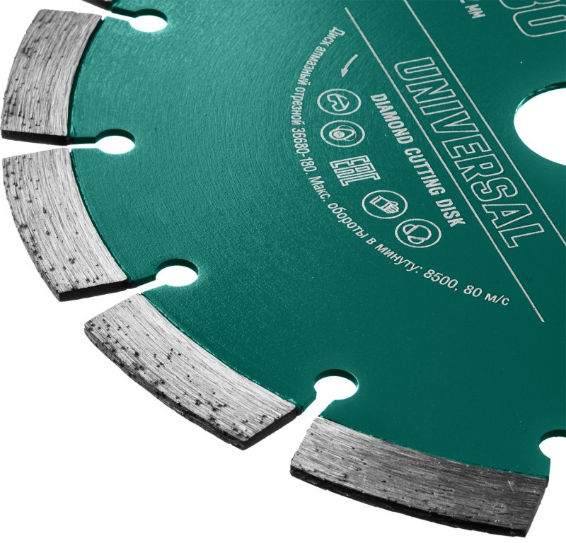 - Оптимально подобранные компоненты металлической связки с высотой сегмента в 10 мм гарантируют продолжительный рабочий ресурс диска при работе даже с самыми сложными в обработке материалами.