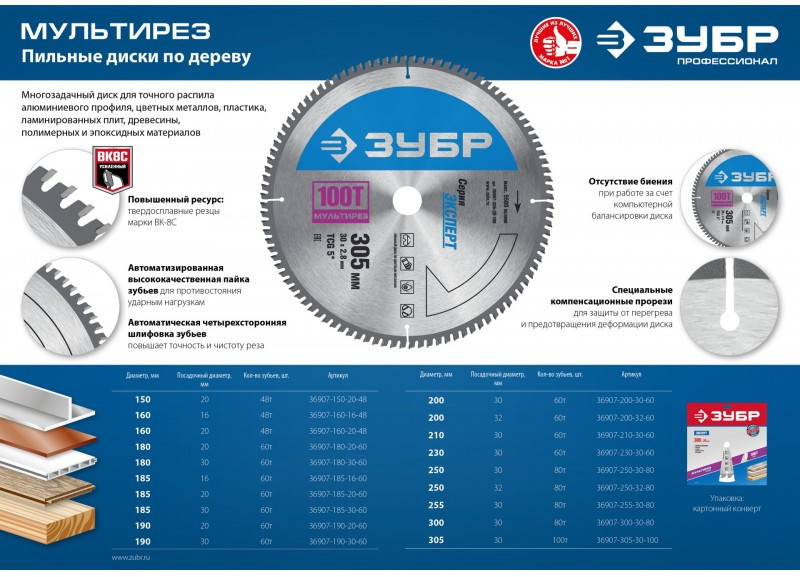 Наличие товара Зубр Мультирез 250 x 32мм 80Т