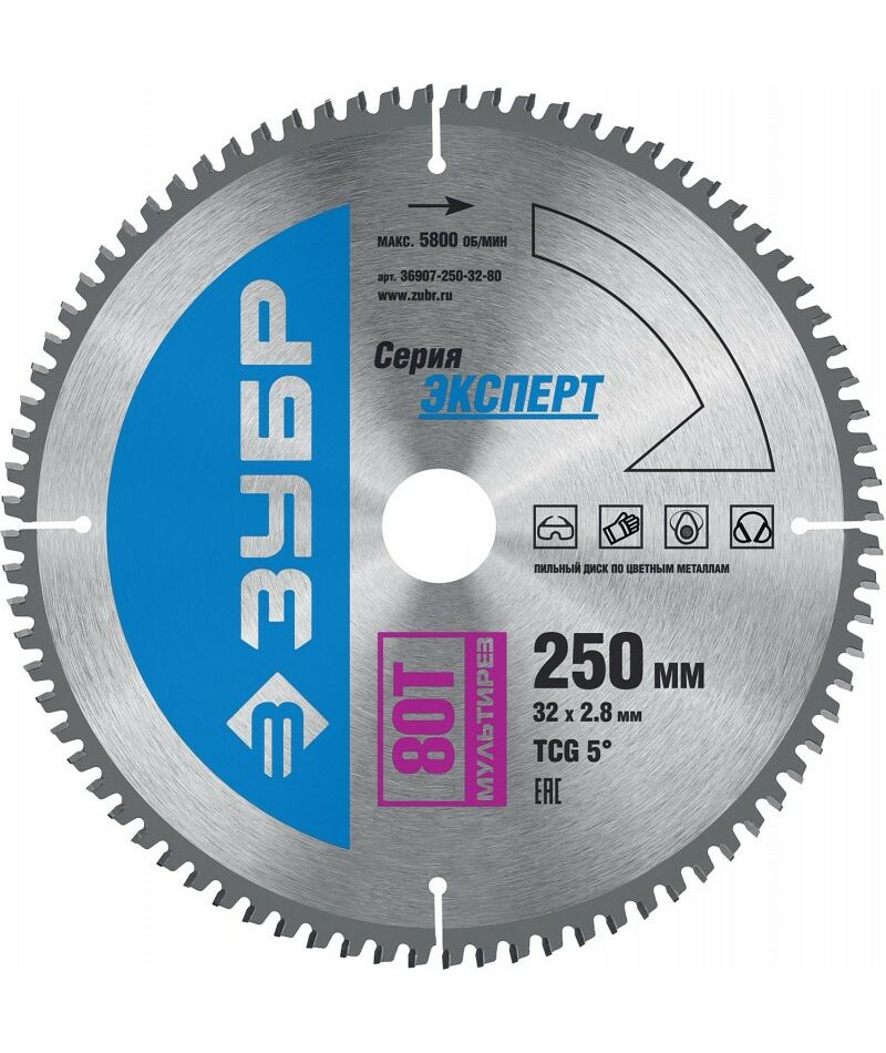 Диск пильный по алюминию Зубр Мультирез 250 x 32мм 80Т [36907-250-32-80]