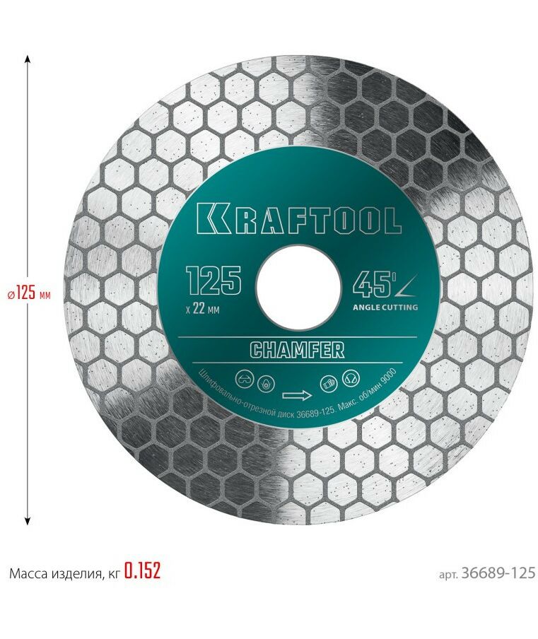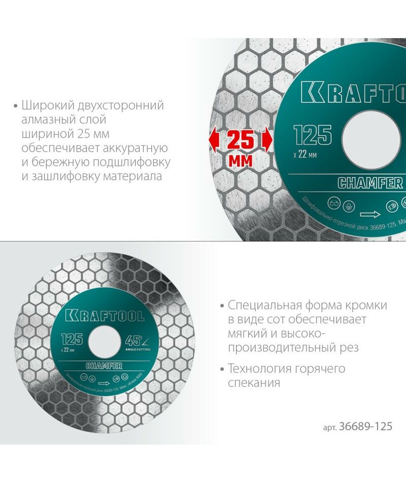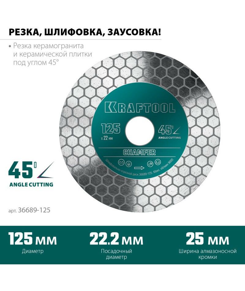 Шлифовально-отрезной алмазный диск KRAFTOOL CHAMFER 125 мм 22.2 мм, 25х1.6 мм [36689-125]