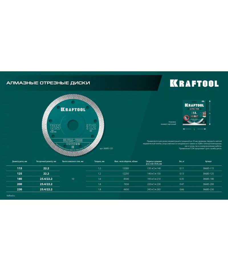 Алмазные отрезные диски Kraftool - профессиональный инструмент изготовленный по новейшим технологиям и отвечающий самым высоким стандартам качества.