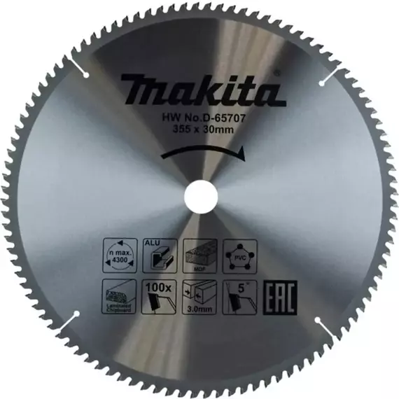 Диск пильный Makita D-65707 по алюм./дер./плас. d=355мм d(посад.)=30мм для циркулярной пилы