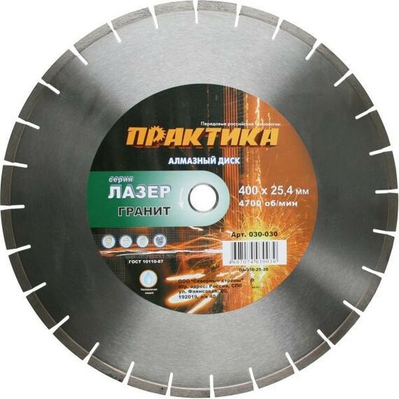 Диск алмазный Практика 030-016 Лазер-20-Гранит, сегмент 10 мм, 350*25,4 мм