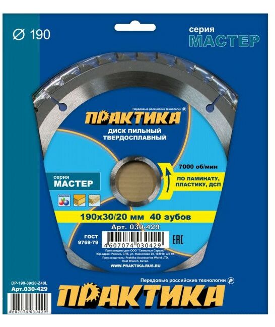 Диск/ламинат Практика 030-429 190х30/20/16мм, Z40