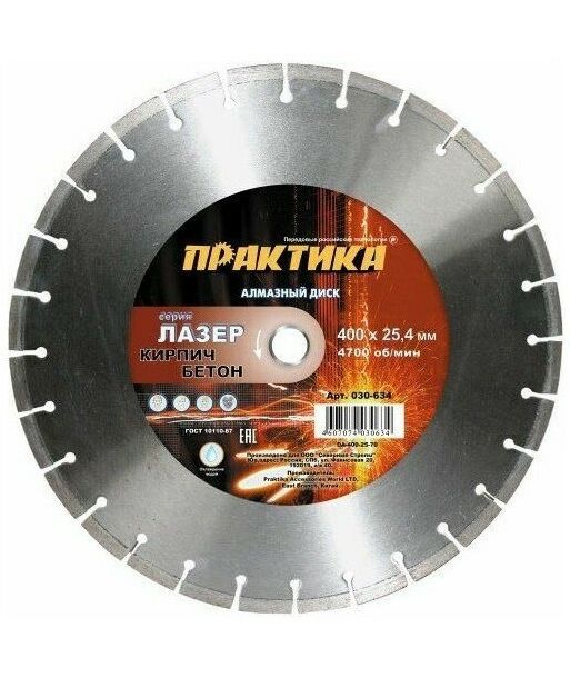 Диск алмазный сегментный Практика 030-634 400х25.4, Эксперт-Бетон