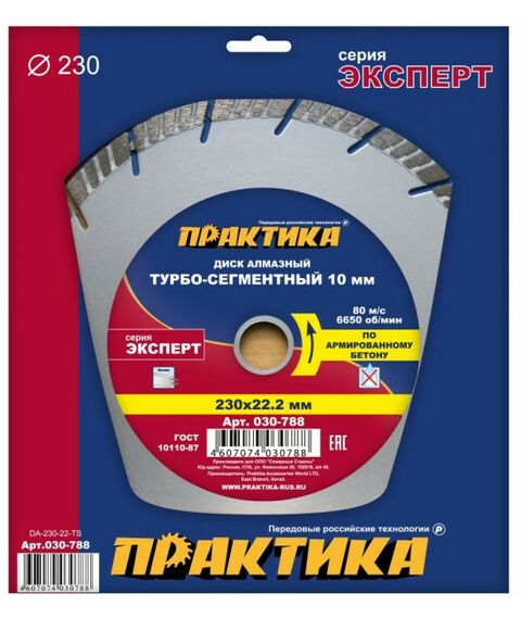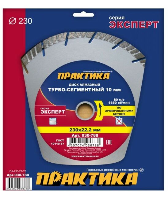 Диск алмазный турбосегментный Практика 030-788 эксперт-бетон, 230*22