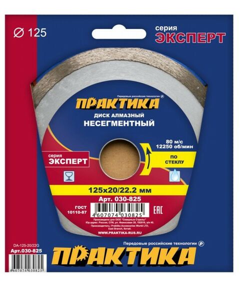 Диск алмазный/стекло Практика 030-825 125х20/22х3мм, Эксперт