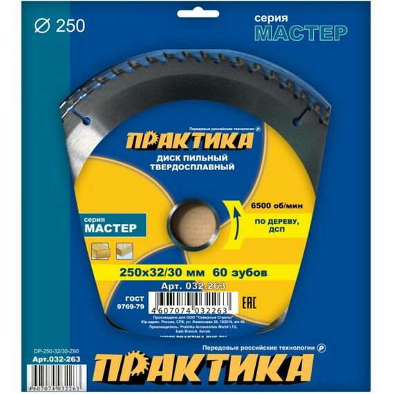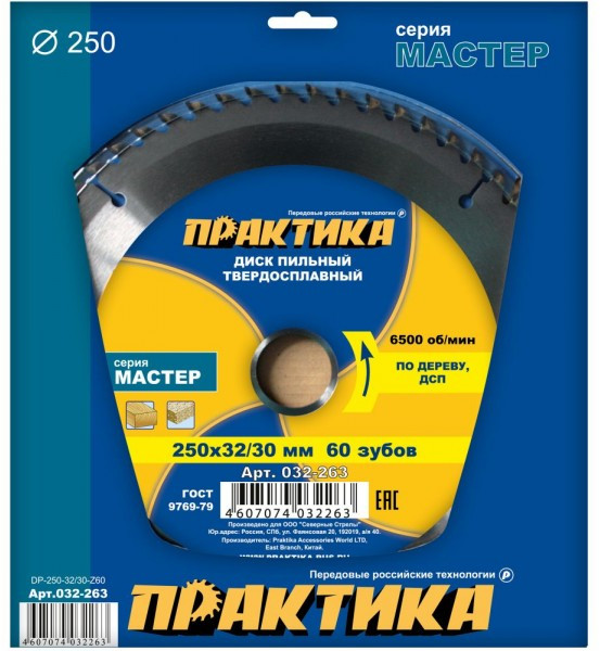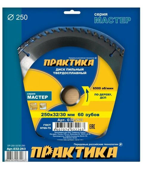 Диск/дерево Практика 032-263 250х32/30мм, Z60