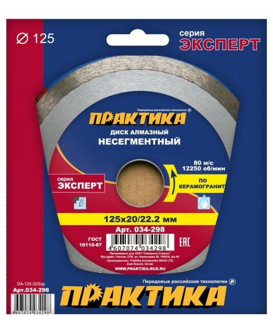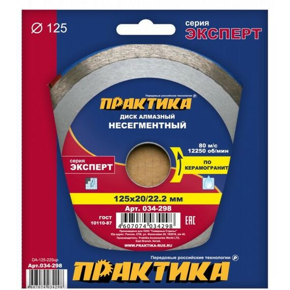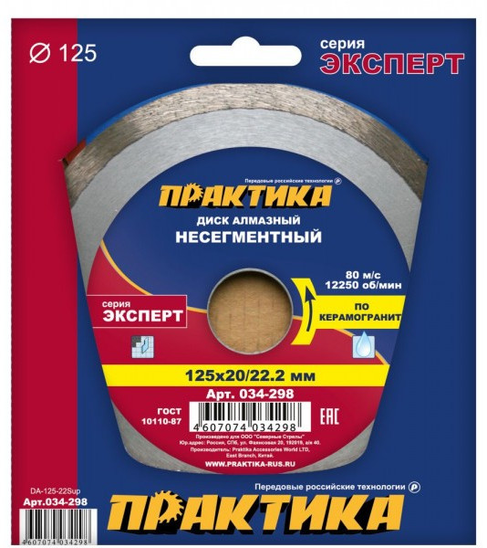 Диск алмазный/керамогранит Практика 034-298 125х20/22х1,5мм, Эксперт
