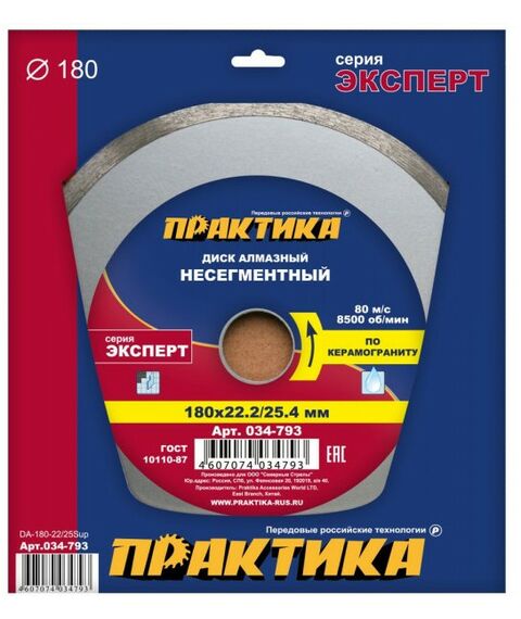 Диск алмазный/керамогранит Практика 034-793 180х22/25,4х1,6мм, Эксперт