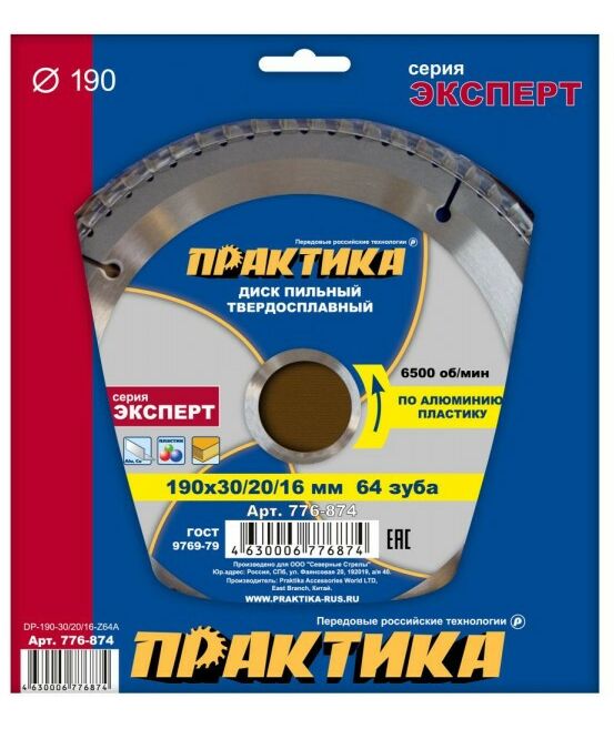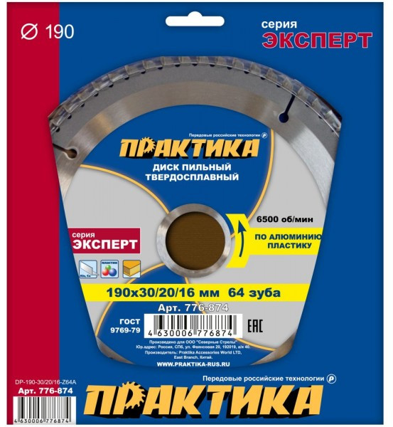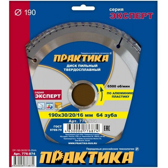 Диск/алюминий Практика 776-874 190х30/20мм, Z64