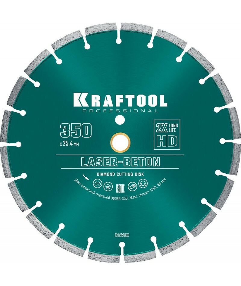 Диск алмазный отрезной по бетону и камню KRAFTOOL 36686-350 LASER-BETON 350 мм