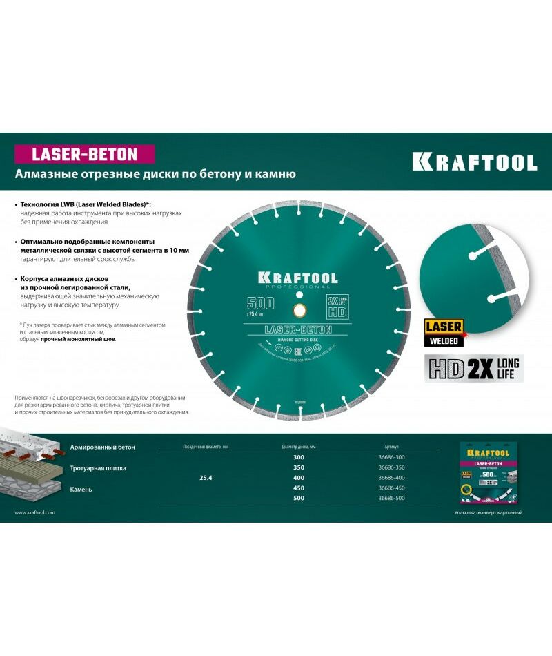 - Алмазные отрезные диски Kraftool - профессиональный инструмент изготовленный на современных автоматических линиях по новейшим технологиям и отвечающий самым высоким стандартам качества.
