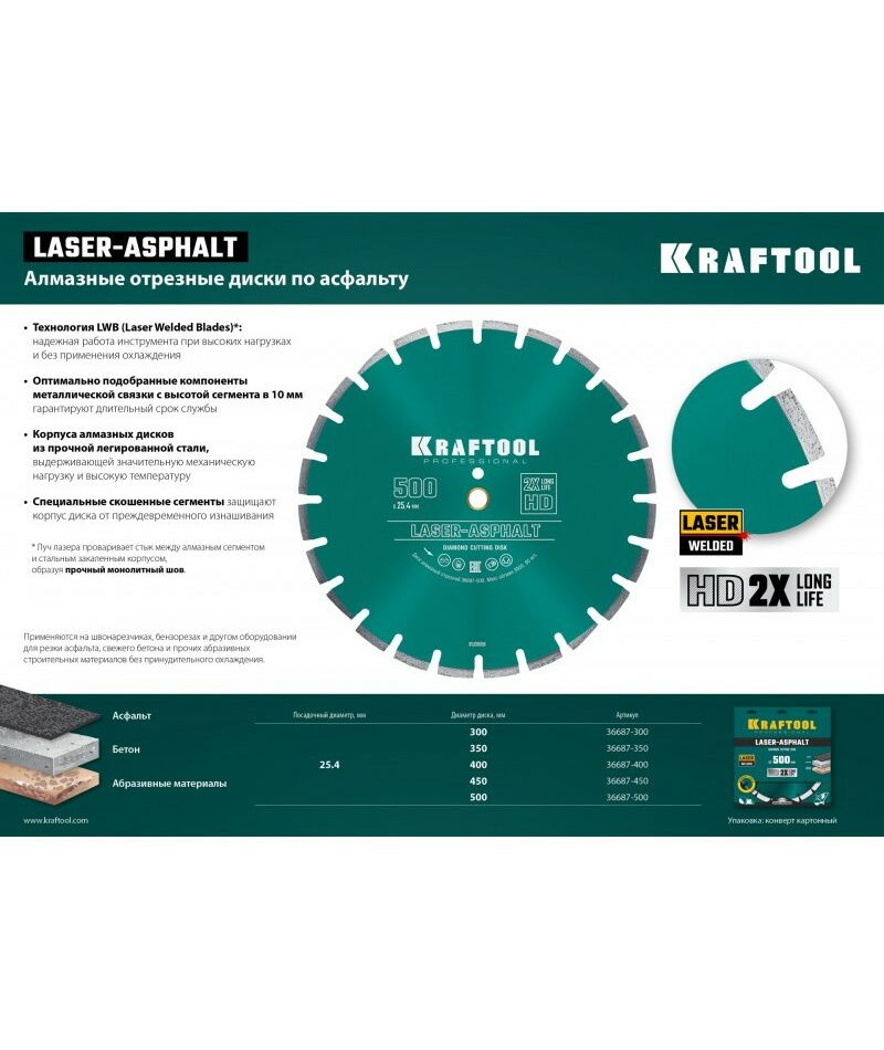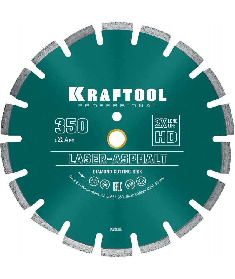 Диск алмазный отрезной по асфальту KRAFTOOL 36687-350 LASER-ASPHALT 350 мм
