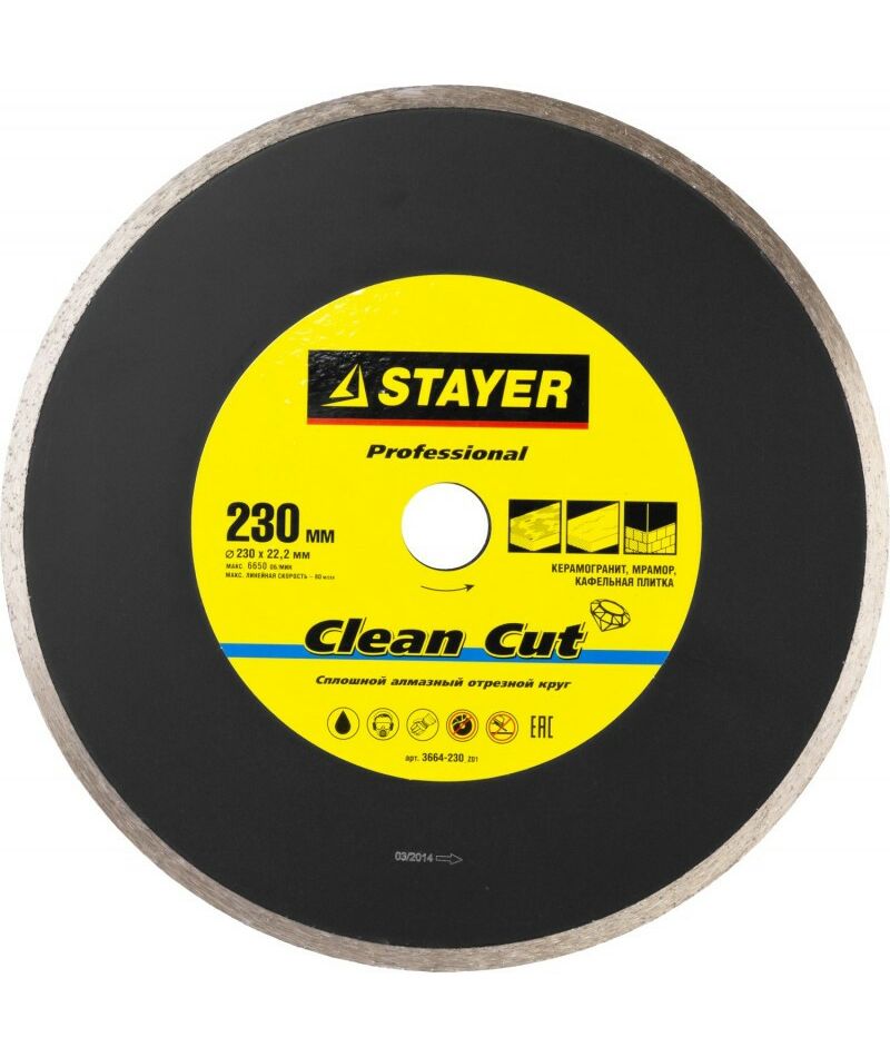 Алмазный диск STAYER PROFESSIONAL Clean Cut 230 мм 22.2 мм, 5х2.4 мм [3664-230]