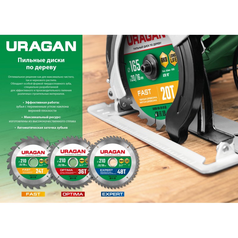 Пильный диск по дереву URAGAN Expert 160 х 20/16 мм 40Т [36802-160-20-40_z01]