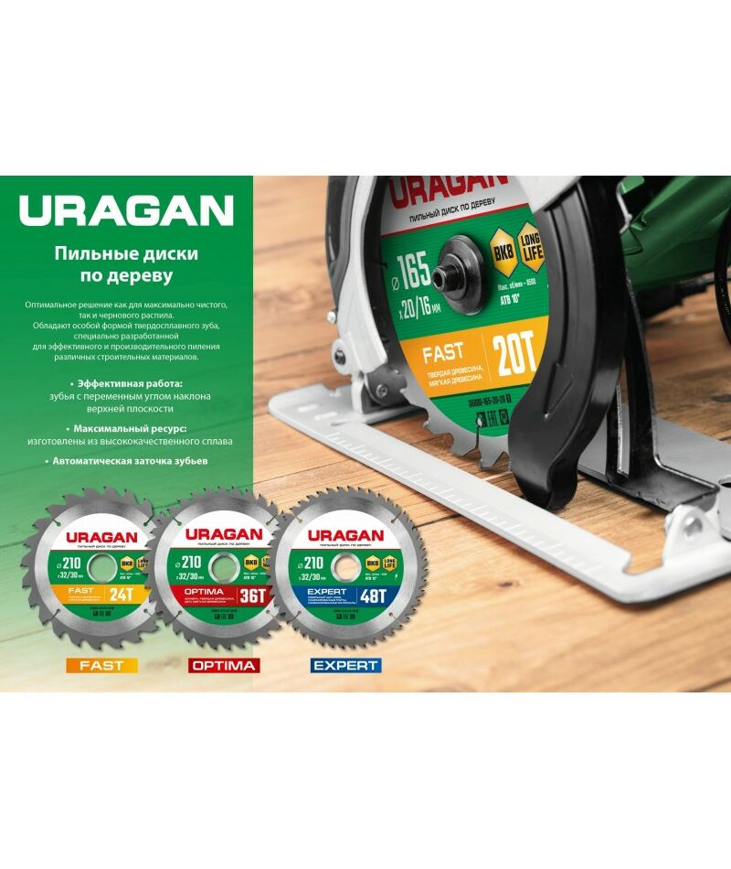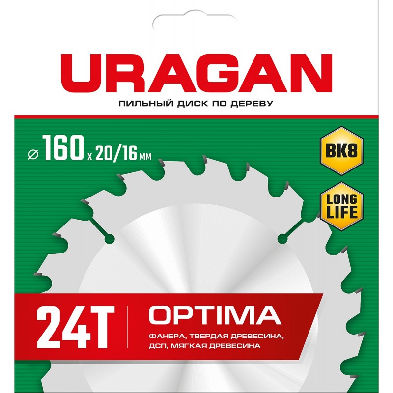 Пильный диск по дереву URAGAN Optima 160 х 20/16 мм 24Т [36801-160-20-24_z01]