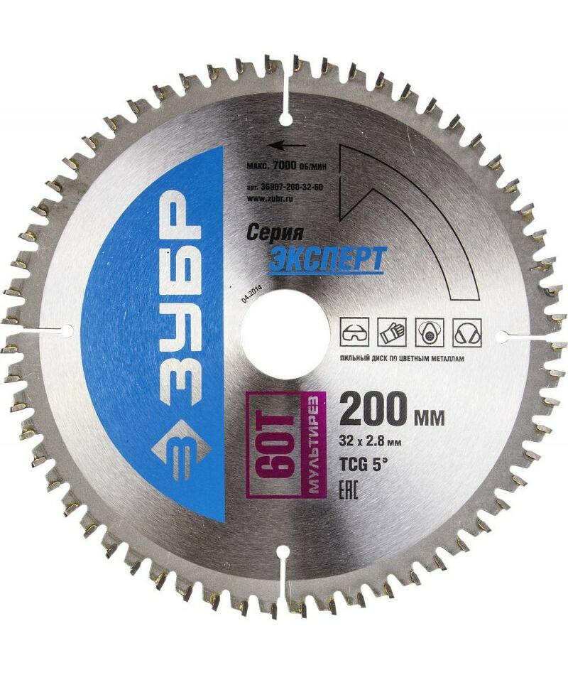 Диск пильный по алюминию Зубр 36907-200-32-60 Мультирез 200 x 32мм 60Т [36907-200-32-60]