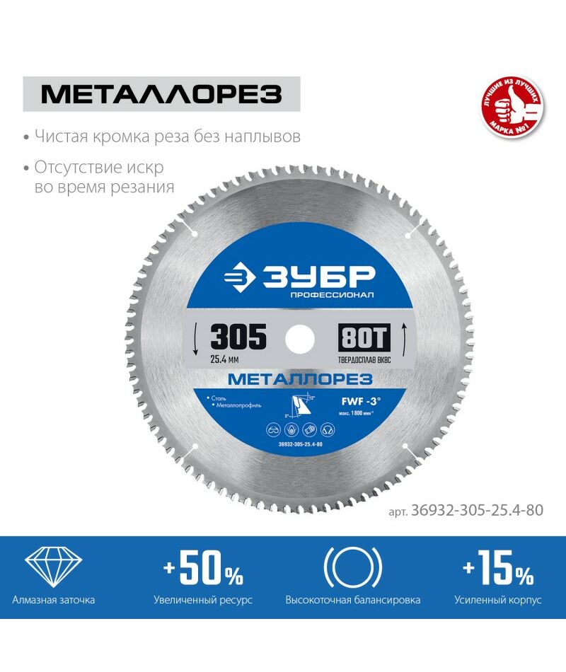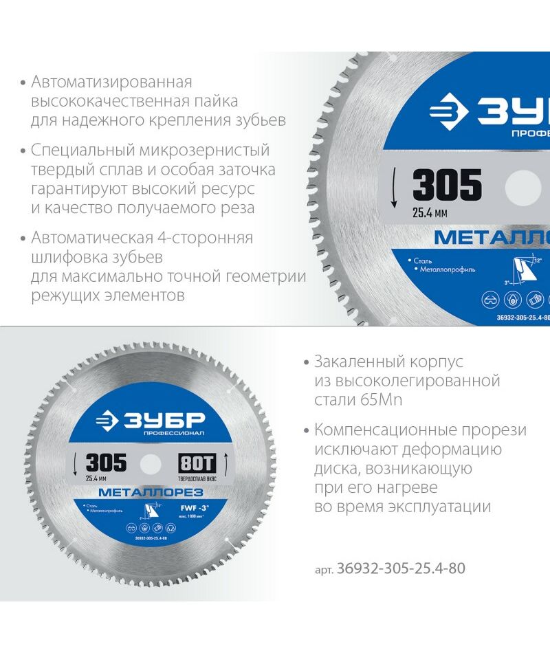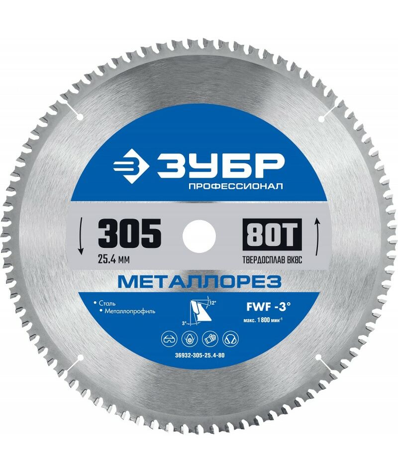 Описание Зубр Металлорез 305 х 25.4 мм 80Т [36932-305-25.4-80]