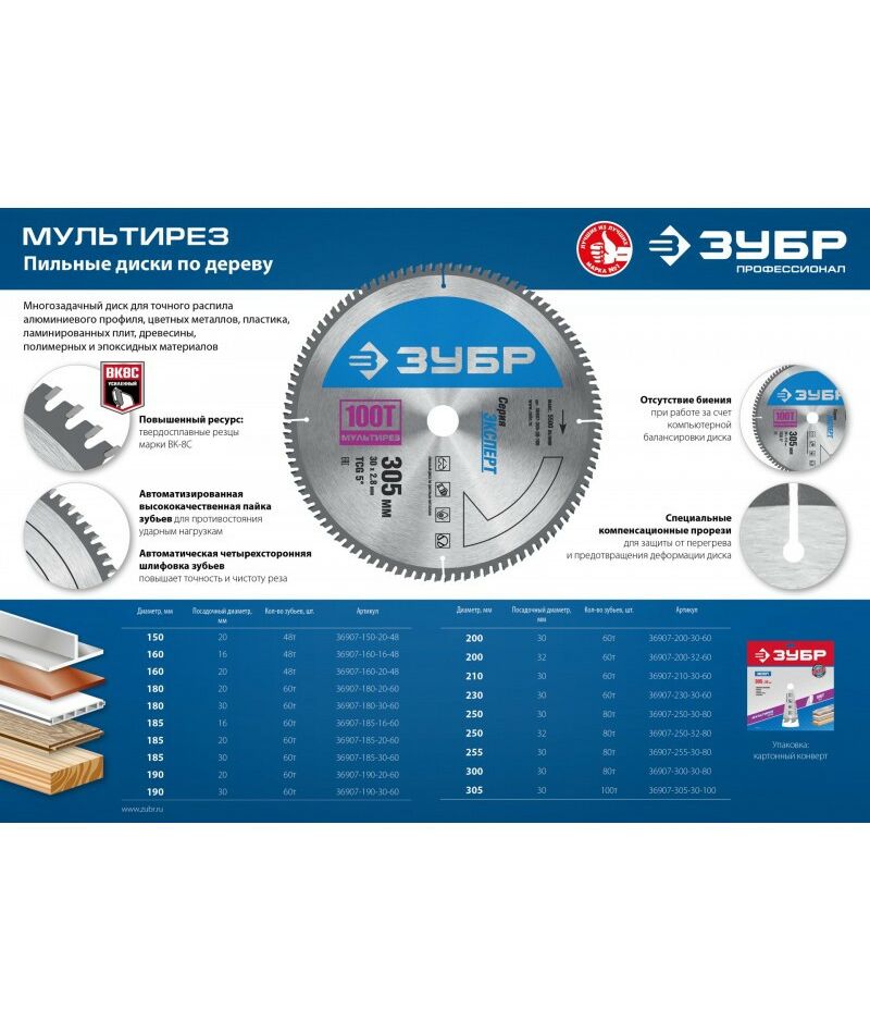 Мультирез - многозадачный пильный диск для точного распила самых разнообразных материалов. Применяется для распила алюминиевого профиля, цветных металлов, композитных материалов, ламинированных плит, полимерных и эпоксидных материалов.