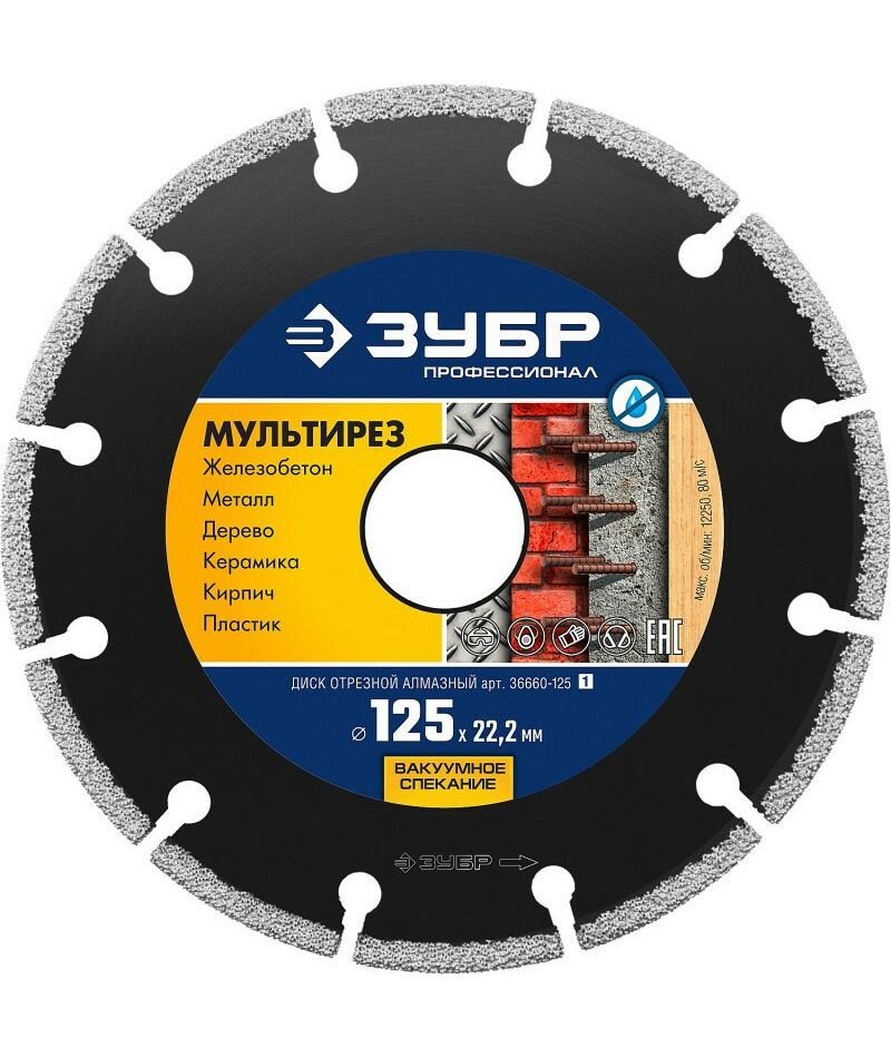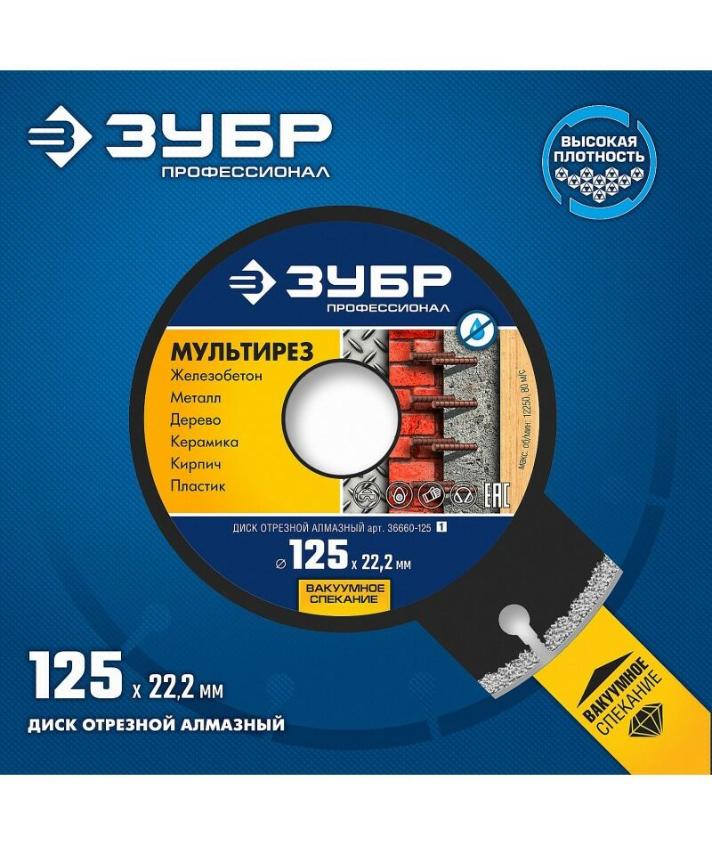 Алмазный диск Зубр Профессионал МУЛЬТИРЕЗ 125 мм 22.2 мм, 5х2.2 мм [36660-125]