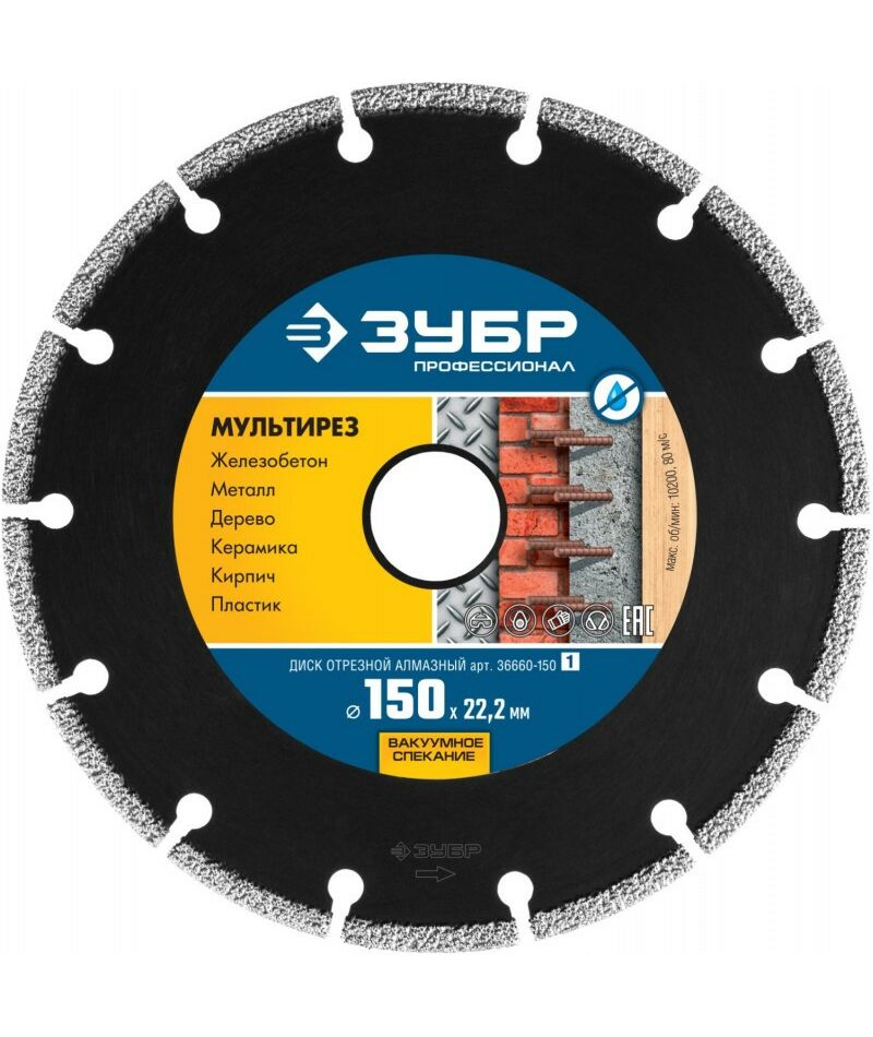Алмазный диск Зубр Профессионал МУЛЬТИРЕЗ 150 мм 22.2 мм, 5х2.6 мм [36660-150]