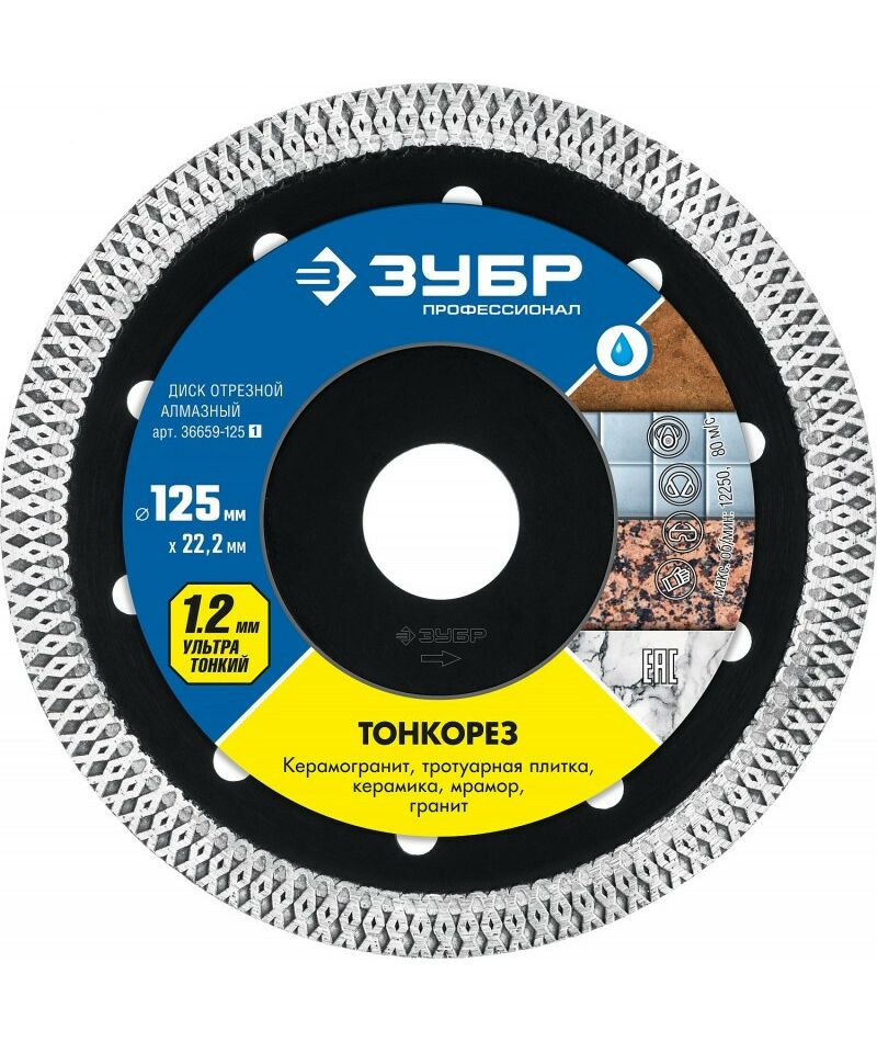 Ультратонкий алмазный диск Зубр ТОНКОРЕЗ 125 мм 22.2 мм, 10х1.2 мм [36659-125]