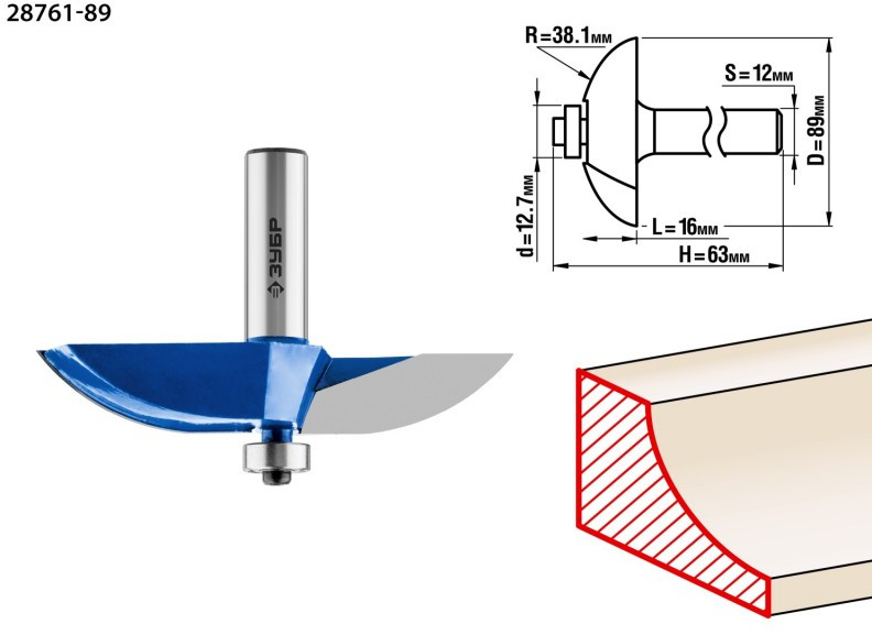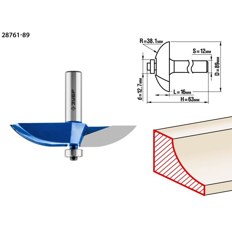 Фреза фигирейная Зубр №2 89x16мм радиус 38.1мм [28761-89]
