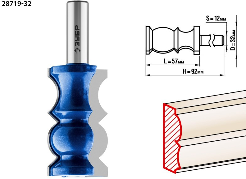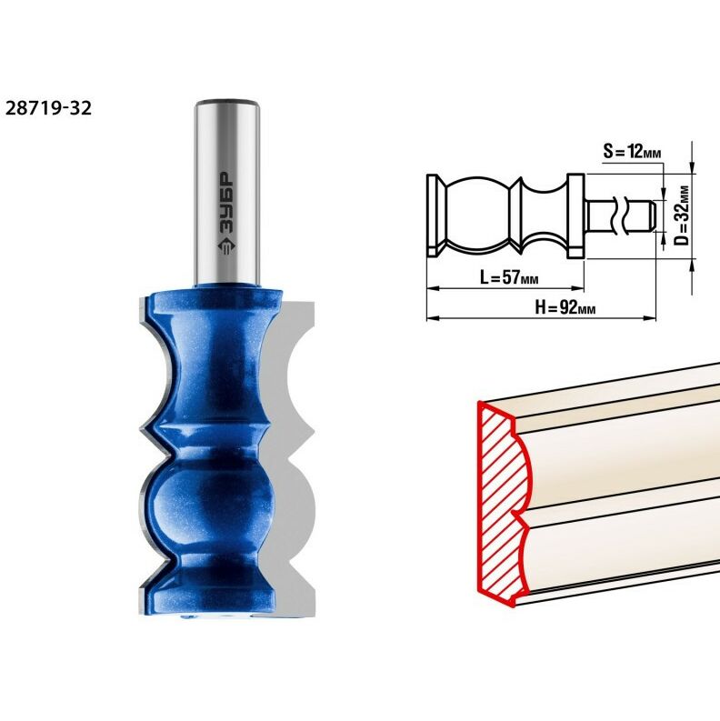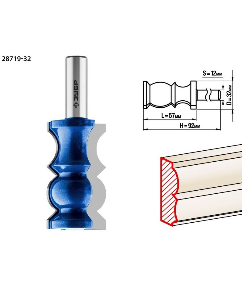 Фреза кромочная фигурная Зубр №8 32x57мм хвостовик 12мм [28719-32]