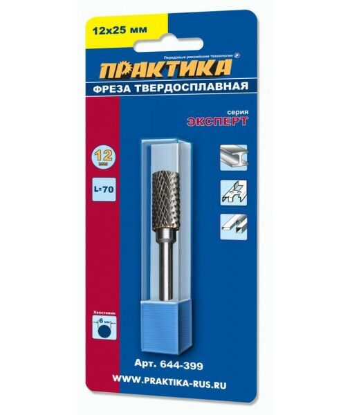 Фреза по металлу твердосплавная Практика 644-399 тип B цилиндрическая, 12 х 25 мм, хвостовик 6 мм