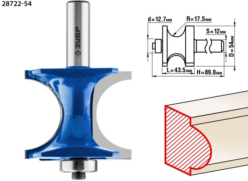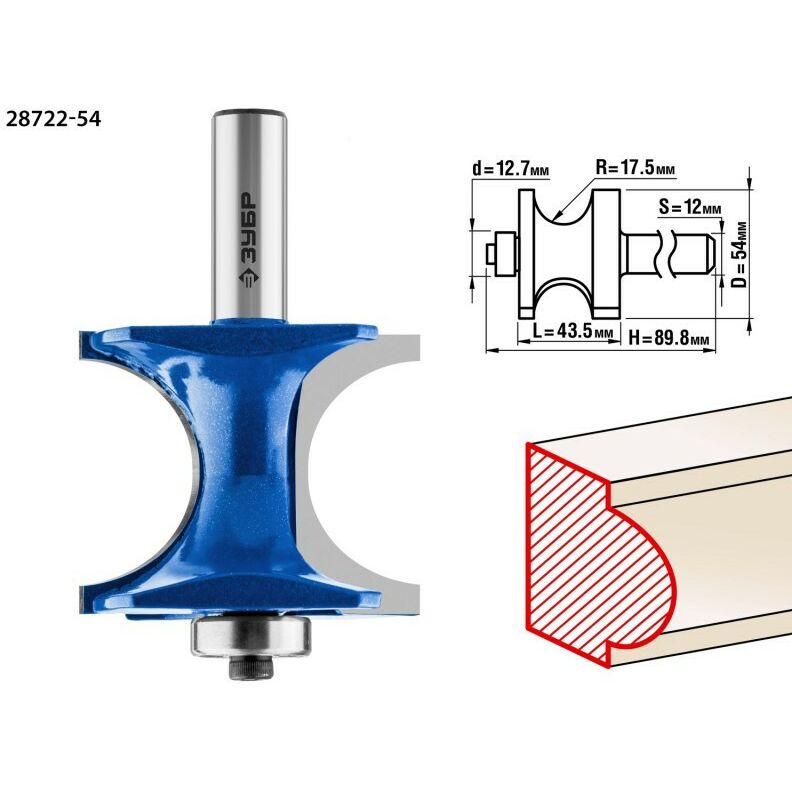 Фреза полустержневая с подшипником Зубр 54x51мм радиус 12.7мм [28722-54]