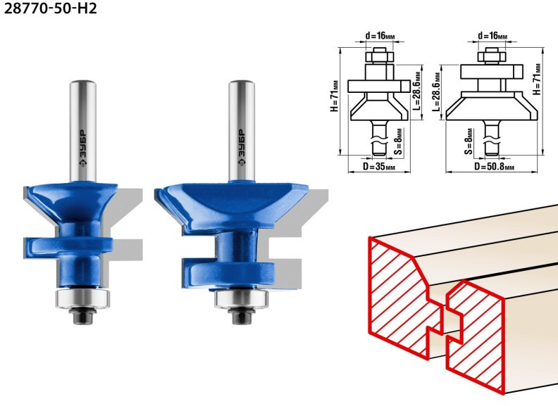 Набор фрез для вагонки Зубр 28770-50-H2 50x30мм, хвостовик 8мм